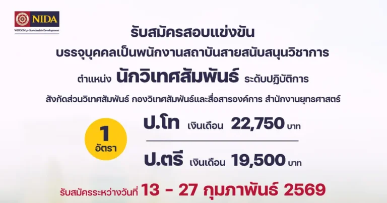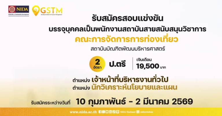 - รายชื่อผู้มีสิทธิสอบภาคความเหมาะสมกับตำแหน่ง (สัมภาษณ์) เพื่อบรรจุบุคคลเป็นพนักงานสถาบันสายสนับสนุนวิชาการ ตำแหน่งนักวิเคราะห์นโยบายและแผน ระดับปฏิบัติการ สังกัดส่วนแผนและพัฒนา คณะการจัดการการท่องเที่ยว 22/07/2025