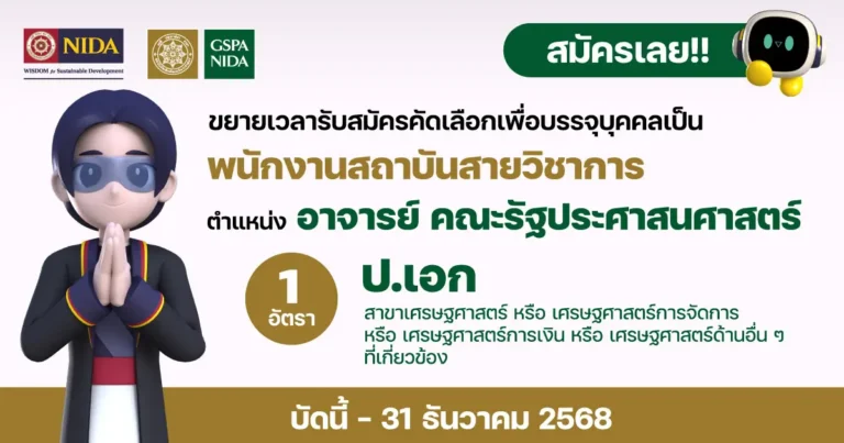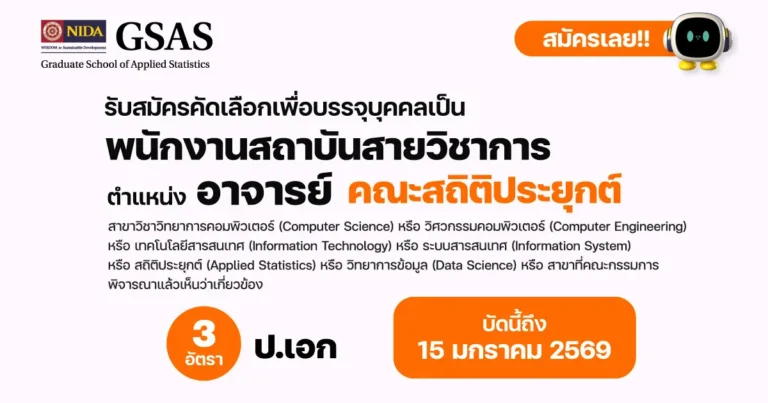 - รายชื่อผู้มีสิทธิสอบภาคความเหมาะสมกับตำแหน่ง (สัมภาษณ์) เพื่อบรรจุบุคคลเป็นพนักงานสถาบันสายสนับสนุนวิชาการ ตำแหน่งนักวิชาการพัสดุ ระดับปฏิบัติการ สังกัดกองคลังและพัสดุ สำนักงานอธิการบดี 24/07/2025