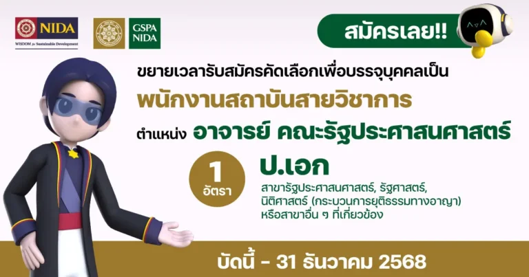 - ผลการสอบแข่งขันเพื่อบรรจุบุคคลเป็นพนักงานสถาบันสายสนับสนุนวิชาการ ตำแหน่งนักวิชาการศึกษา ระดับปฏิบัติการ สังกัดส่วนการศึกษา คณะรัฐประศาสนศาสตร์ 23/05/2025