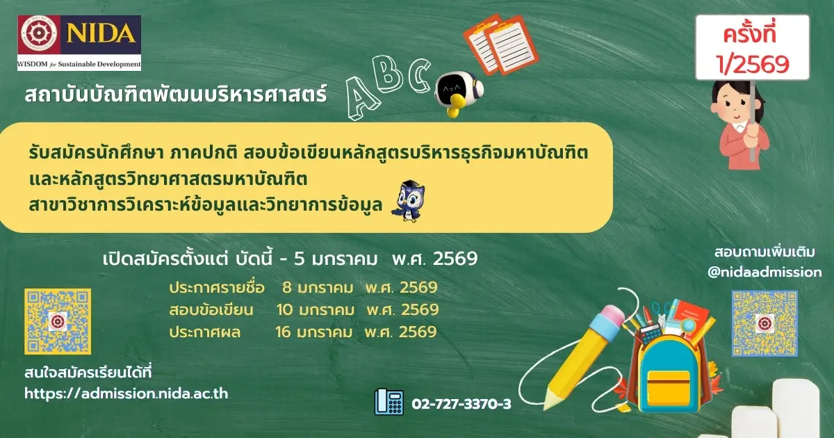 สถาบันบัณฑิตพัฒนบริหารศาสตร์จะเปิดรับสมัครสอบเข้าศึกษาต่อระดับปริญญาโท ภาคปกติ