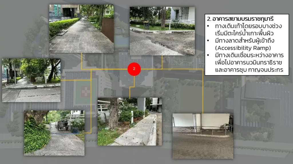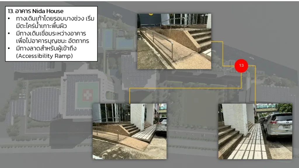 The National Institute of Development Administration (NIDA) places great importance on ensuring pedestrian accessibility within its campus, with a strong commitment to promoting sustainable mobility. The institution aims to encourage non-motorized travel and the use of environmentally friendly transportation systems by continuously improving pedestrian infrastructure. NIDA has developed interconnected walkways that link all major buildings across the campus, creating a pedestrian-friendly environment. The walkways are designed to be wide, shaded, and safe, with clear directional signage and accessibility ramps to ensure inclusivity for all users. Furthermore, the university conducts regular assessments and data collection on pedestrian pathways both inside and around the campus to identify and enhance areas for improved safety and convenience. These measures help to promote walking, reduce carbon emissions, and support NIDA’s vision of becoming a sustainable and green university, aligning with Sustainable Development Goal SDG 11.4.6 Pedestrian priority on campus