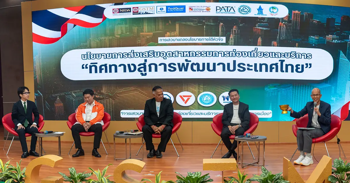‘คณะท่องเที่ยว – นิด้า’ จัดเสวนา “นโยบายการส่งเสริมอุตสาหกรรมการท่องเที่ยวและบริการ: ทิศทางสู่การพัฒนาประเทศไทย” ดึงผู้แทน 4 พรรค แลกเปลี่ยนความคิดเห็นอย่างสร้างสรรค์และยั่งยืน