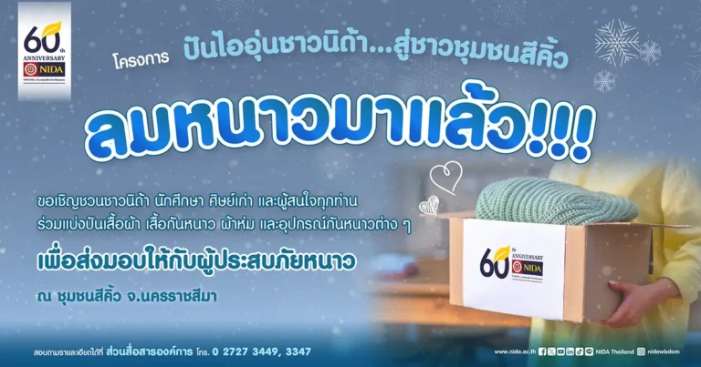 กิจกรรมและบริการ โครงการ “ปันไออุ่นชาวนิด้า…สู่ชาวชุมชนสีคิ้ว จ.นครราชสีมา”22 November 202522 November 2025