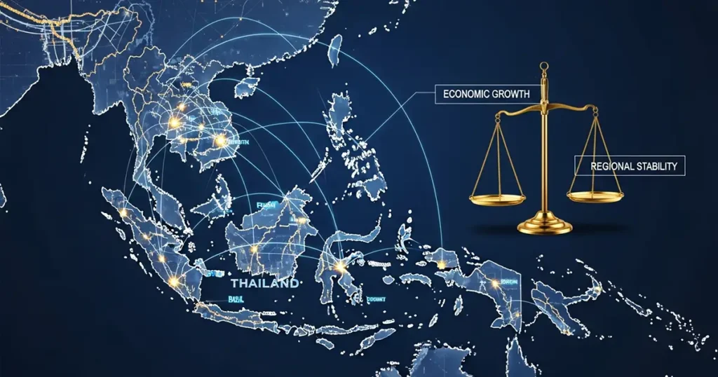 อาจารย์สันติ: ความขัดแย้งระหว่างประเทศสมาชิก เช่น กรณีความขัดแย้งระหว่างไทยกับกัมพูชา จะมีผลต่อการค้าชายแดนเพียงในระยะสั้น ไม่ได้ส่งผลกระทบต่อภาพรวมทางเศรษฐกิจในอาเซียนมากนัก เพราะยังมีเส้นทางการค้าอื่นที่สามารถรองรับได้ เช่น การขนส่งสินค้าจากไทยอ้อมผ่านทางลาวและเข้าสู่กัมพูชา แต่หากความขัดแย้งดำเนินไปอย่างยืดเยื้อ นักลงทุนอาจมองภูมิภาคนี้ว่ามีความเสี่ยงสูง ส่งผลให้การลงทุนใหม่ลดลง และเศรษฐกิจโดยรวมเติบโตช้าลง กล่าวคือ หากมองที่ตัวเลขทางเศรษฐกิจ อัตราการเติบโตของอาเซียนจะมีแนวโน้มต่ำลง